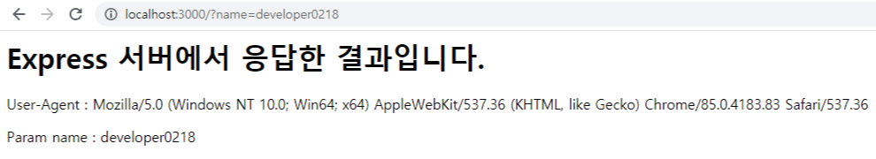res.end('<h1>Express 서버에서 '+req.user+' 응답한 결과입니다.</h1>');