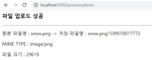 res.write('<p>원본 파일명 : ' + originalname + ' -> 저장 파일명 : ' + filename + '</p>');